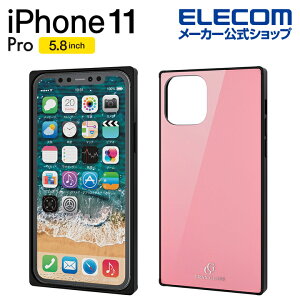 エレコム iPhone 11 Pro 用 ハイブリッドケース ガラス スクエア 背面カラー ケース カバー iphone5.8 iPhone11 Pro iPhone11Pro 新型 iPhone2019 5.8インチ 5.8 スマホケース TPU素材 ポリカーボネート ガラス シンプル ピンク PM-A19BHVCGS1PN