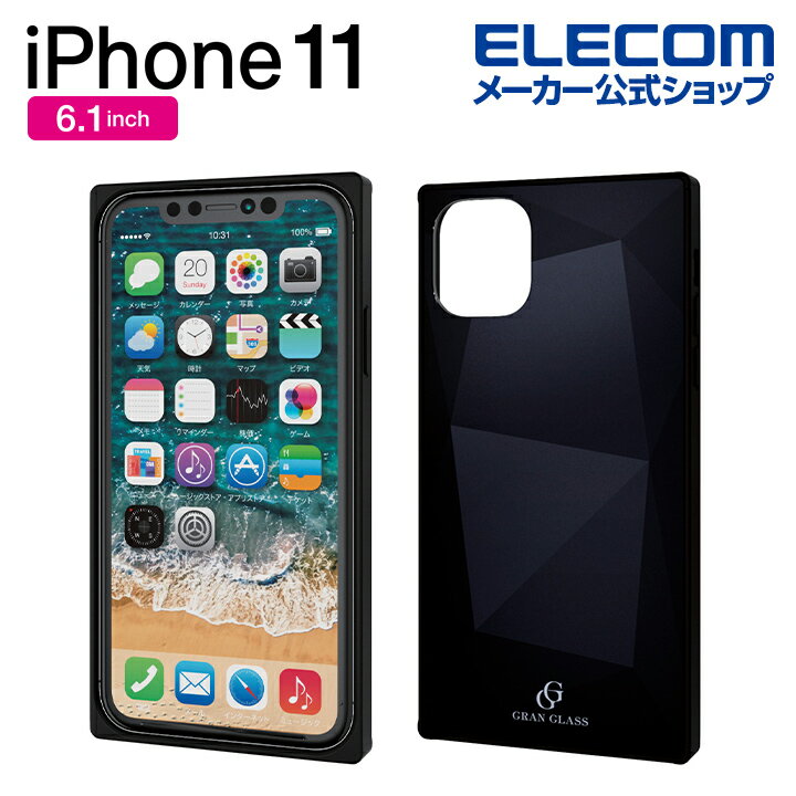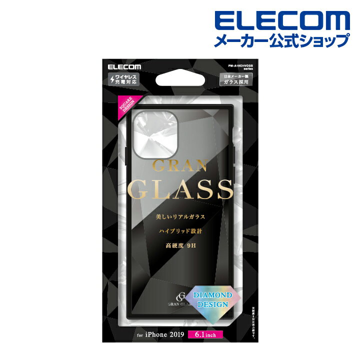 エレコム iPhone 11 用 ハイブリッドケース ガラス スクエア デザイン ケース カバー iphone6.1 iPhone11 アイフォン 11 新型 iPhone2019 6.1インチ 6.1 スマホケース シンプル TPU素材 ポリカーボネート ブラック PM-A19CHVCGS2BK